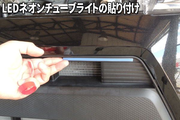貼り付け部分の脱脂を行い、ネオンチューブライトを貼り付けます。