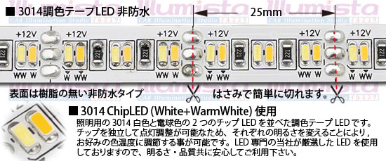 3014調色テープLED非防水 1m/240LED 1,580円 3014調色テープLED非防水 5m/1200LED 7,980円