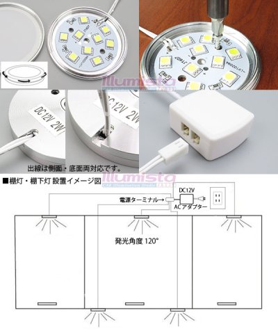 超薄LEDダウンライト 2W 9LED DC12V電源で点灯が可能なダウンライトです。 一般的なダウンライトの設置はAC100Vの工事が必要となり 電気工事士の資格が必須ですが、 DC12Vなら資格不要で誰でもDIY設置が可能です。 別売りのDC12V電源・電源ターミナルを、 点灯させたい個数に合わせて接続するだけで点灯が出来ます。 1灯でご利用の場合には2P/DC変換ケーブル [4052] をご利用ください。 5050 3chip SMDを9灯も使用しているのでとても明るく、 出線は側面・底面どちらにも対応していますので、 棚下灯やディスプレイ照明に是非ご利用ください。 --------------------------------------------------------- おススメ調光器の記事です!! ![]() --------------------------------------------------------- ※トヨタ コペン GR SPORT 取付参考例※ --------------------------------------------------------- ■製品仕様 入力電圧 : DC12V 消費電力 : 約2W 本体寸法 : 59Φ×7.5mm(約) コード長 : (約) 1.95m 付属品 : 取り付け用ビス2個 ■カラーは白色 6000Kと電球色 3000Kの2種類をご用意致しました。 ○超薄LEDダウンライト 2W 9LED 白色 6000K 480円/個 ○超薄LEDダウンライト 2W 9LED 電球色 3000K 480円/個 ※単体では光りません、下記の参考数をご確認頂き、 別売りのDC12Vアダプター・電源分岐ターミナルに接続して下さい。 ACアダプター 12V 1A [6206] でダウンライト4個点灯可能 ACアダプター 12V 1.5A [6207] でダウンライト6個点灯可能 ACアダプター 12V 3A [6209] でダウンライト12個点灯可能 中国製 ■ご注意 ※商品はすべて出荷前に点灯確認をしておりますが、 取り付けの前に必ず点灯確認をお願いいたします。 ※写真中のACアダプター、電源分岐ターミナル等は商品に含まれません。 数量1でダウンライト1個のお届けとなります。 ※保証は、商品到着後7日以内の初期不良の物に対して行います。 万が一不具合のある場合には、商品到着後7日以内にご連絡下さい。 ※本製品の分解・改造・修理や取り付け後は保証の対象外となります。 ※いかなる場合にも、本体代金以上の保証はいたしません。 上記ご了承の上お買い求め下さい。 |