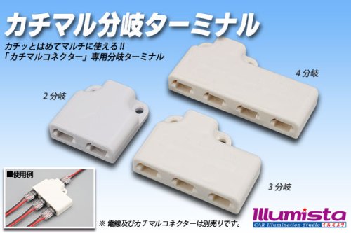 カチマルコネクター カチッとはめてマルチに使える!! カチマルコネクター 平行線の結線や分岐など、マルチに使えるコネクターです。 別売りの分岐ターミナルを使用して、分岐コネクタとしても使えるので、 テープLEDなどの分岐や結線に是非ご利用ください。 日産 セレナ HC27取付例 ■数量をお選びください カチマルコネクター バラ販売 70円 10個セット 650円 100個セット 5,500円 ■仕様 サイズ(約): 幅9.6×長さ22.3×高さ6mm 使用電圧:5-24V 定格電流:6A(MAX) 接続配線種類:AWG18-22 (最大2.1Φ) 中国製 ※写真には複数映っていますがセットではありません。 ※当商品は、防水ではありませんのでご注意ください。 ※接触不良により発熱し、火災が発生する恐れがありますので、 電線は確実に差し込んでレバーを押し下げてください。 ※再結線の場合には電線の先端を切り、再度新しくむき出してください。 ※電線の種類、使用条件等により使用できない場合があります。 ※差し込むだけのコネクターですので強く引くと抜けてしまいます。しっかりと固定して下さい。 ※サイズはノギスで計った物です。若干の誤差はご了承ください。 ※取り付け後の交換・返品等には一切対応できません。 |