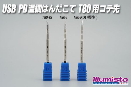 サイズ : L175×14Φ(カバー付き) 重 量 : 38.9g(こて先込み) 動作電圧 : 9〜20V 出 力 : 最大100W(20V/5A時) 温度範囲 : 80〜450℃ 温度変更単位 : ±5℃ 給電ポート : USB Type-C (PD/QC) セット内容 : T80本体×1 USB Type-A to Type-C ケーブル×1(ファームウェア更新用) KU型こて先×1 簡易はんだごてスタンド×1 ※100Wの出力にはご使用の電源とUSB Type-Cケーブルの両方が PD/QC電源規格に対応している必要があります。 中国製