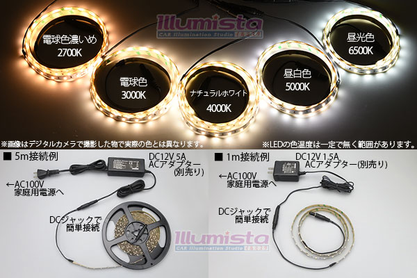 ○スイッチングACアダプター 12V 5Aで、 5m点灯可能