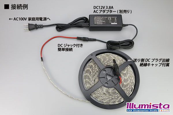 ○ACアダプター12V 3.8Aで、 1巻 5m点灯可能