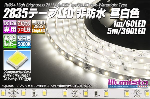 超高演色2835テープLED 60LED/m 非防水 昼白色 5000K 5m(300LED) 6,400円
