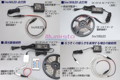 ○ACアダプター12V 5Aで、 1本5m点灯可能