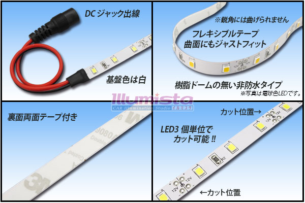 裏面両面テープ付き、1ユニット(LED3個)単位で自由にカット可能。