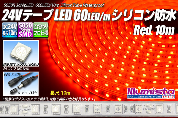 24VテープLED 60LED/m シリコン防水赤色 10m