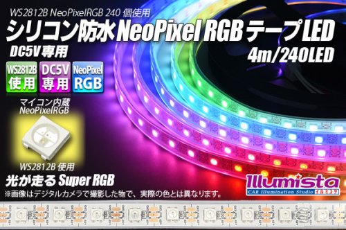 ミニRF Neo Pixel RGBコントローラー 5V NeoPixel RGB 5Vタイプ専用のリモートコントローラーです。 点灯のON/OFFや明るさ調節機能、多彩な点灯パターンを 無線リモコンからいつでも簡単に切り替えることができます。 記憶機能付きで電源再投入後も前回終了時の動作をいたします。 便利なDCコネクタ付きなので面倒な配線加工が必要ありません。 別売のNeoPixelテープLED製品と組み合わせて、 看板や間接照明などのイルミネーションにご活用ください。 ミニRF Neo Pixel RGBコントローラー 5V 980円/台 ■機能 単色発光×12色 明るさ調節 16段階 スピード調節 14段階 点灯ON/OFF 設定記憶機能 デモモード機能 リモコンとのペアリング設定機能 約360種類の点灯パターン ・単色点灯 (14種) ・単色スクロール (56種) ・単色流星スクロール (14種) ・単色ドットチャージ (14種) ・二色スクロール (78種) ・二色流星スクロール (108種) ・二色ドットチャージ (36種) ・七色全灯 (3種) ・七色ワイプ (8種) ・七色スクロール (12種) ・七色流星スクロール (21種) ・七色チャージスクロール (4種) ■セット内容: コントローラー本体×1台 専用リモコン×1台 ボタン電池CR2025(動作確認用)×1個 ■製品仕様 入力電圧 : DC5V専用 定格電流 : 最大3A 使用可能IC数 : 30〜2048灯 (30灯単位で変更可能) 本体寸法 : W70×D13×H9mm(約)(突起部およびコード含まず) コントローラー寸法: W85×D40×H7mm(約) コード長 : 電源入力DCジャック 120mm、出力3Pコネクタ 80mm(約) ※こちらのコントローラーはNeoPixel 「RGB 5V」専用となります。 RGB12VモジュールやNeoPixel「RGB/W」タイプのLEDはご使用になれません。 ※ご使用の際には別途DC5Vの電源と対応のNeoPixelテープLED等が必要になります。 ■ご注意 ※接続時には必ず極性をご確認ください。 ※デモパターンはロットにより多少異なる場合があります。 ※NeoPixel RGB 5V専用です。その他のLEDに対して使用することはできません。 ※テープLEDを接続する際には必ず電源を切って極性を良くご確認の上接続して下さい。 ※商品はすべて出荷前に点灯確認をしておりますが、 取り付けの前に必ず点灯確認をお願いいたします。 ※当社製品以外のテープLED等を接続された場合には保証の対象外となります。 ※保証は、商品到着後7日以内の初期不良の物に対して行います。 万が一不具合のある場合には、商品到着後7日以内にご連絡下さい。 ※本製品の分解・改造・修理や取り付け後は保証の対象外となります。 ※いかなる場合にも、本体代金以上の保証はいたしません。 上記ご了承の上お買い求め下さい。 |